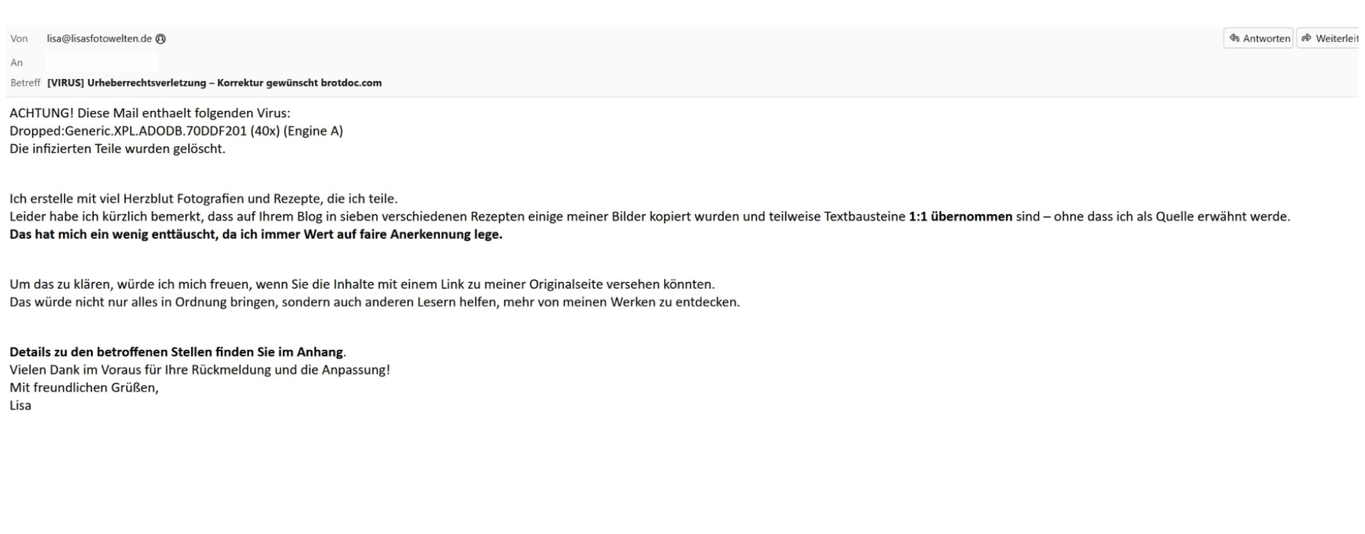 Leider wurde meine Seite lisasfotowelt vor Kurzem Ziel eines Hackerangriffs und eine zweite Domain lisasforowelten erstellt. In diesem Zusammenhang wurden von einer externen Quelle Spam-Mails an verschiedene Kontakte verschickt, ohne mein Zutun. Ich möchte mich aufrichtig bei allen bedanken, die mich darauf aufmerksam gemacht haben und Verständnis gezeigt haben. Sicherheit und Vertrauen sind mir sehr wichtig.